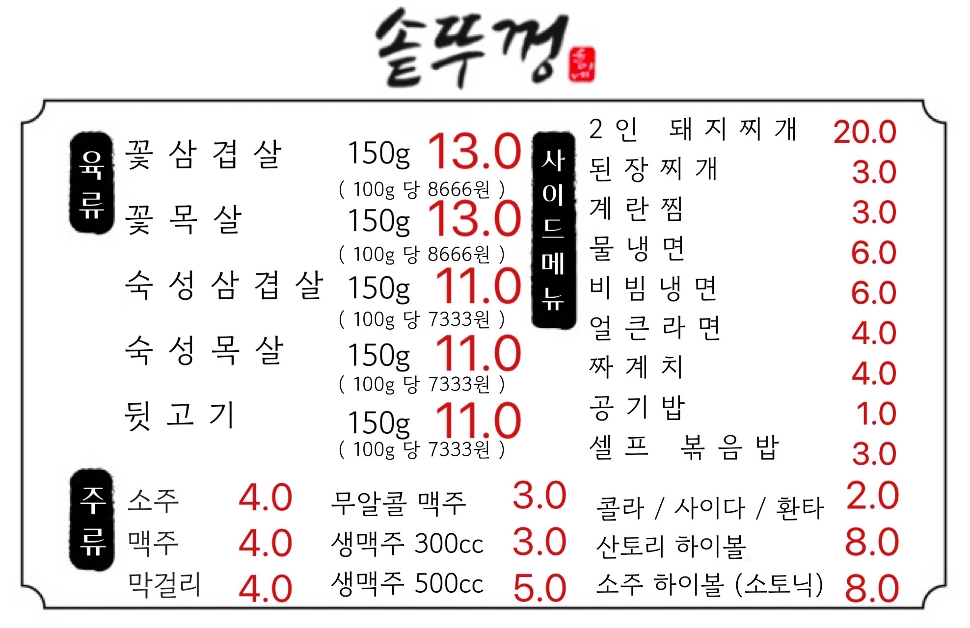 - 한식 육류 요리 전문점